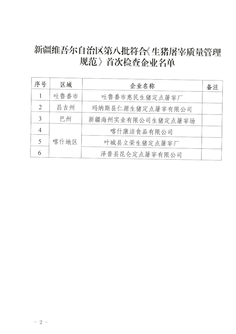 关于第八批符合《生猪屠宰质量管理规范》首次检查企业的公示